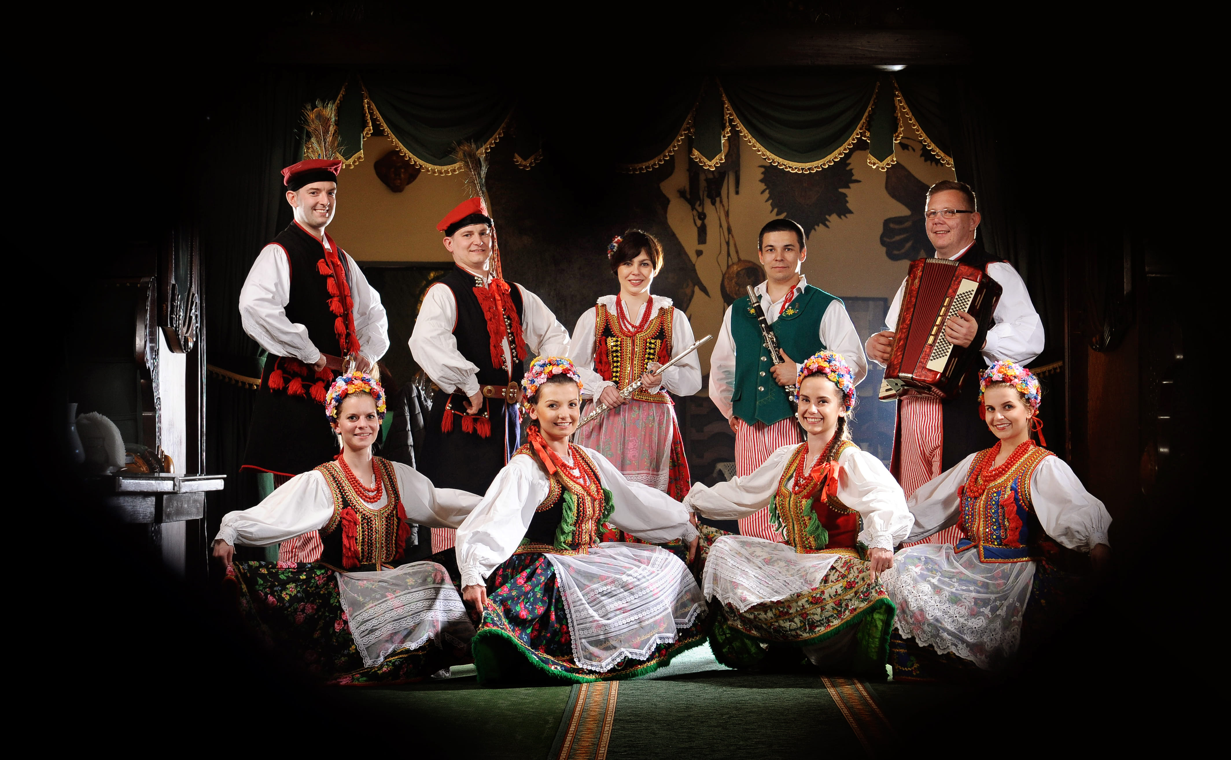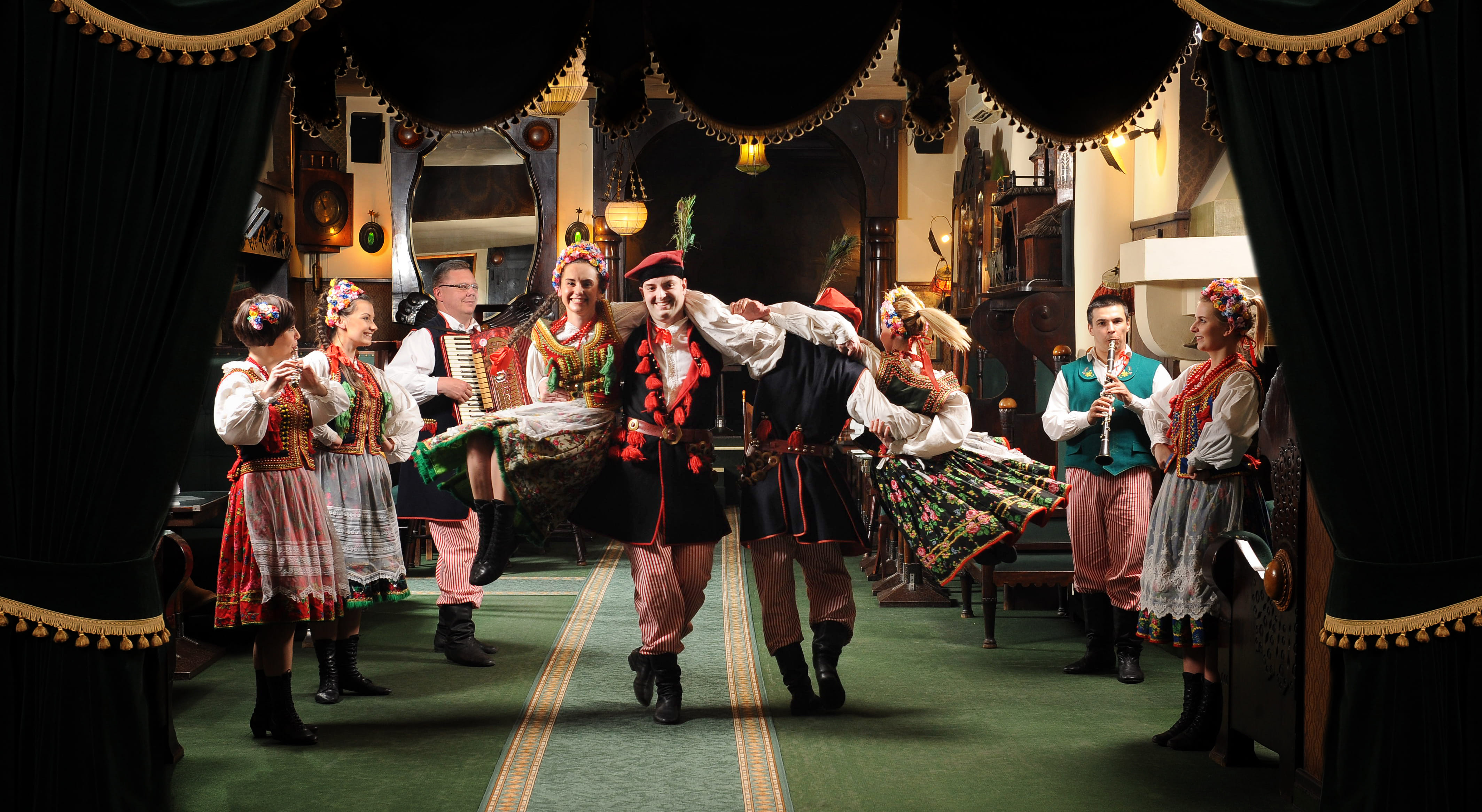 During the show you will watch talented dancers and musicians presenting traditional Polish songs and energetic folk dances from different regions of Poland. The performers wear colorful regional costumes and bring centuries-old traditions to life through music and dance.